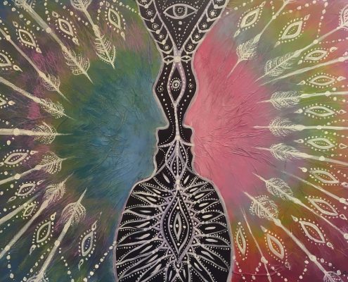 Bratnie Dusze, tańczą taniec miłości. Nie ma początku ani końca, wszystko płynie. Są jednością.