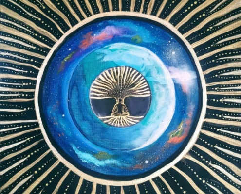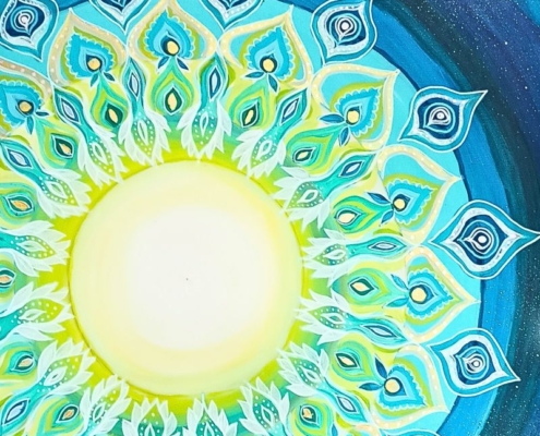 Od niego wszystko się zaczęło. Pewnego dnia, około 6 lat temu, kupiłam komplet farb, płótna, sztalugę i namalowałam obraz. Byłam zaskoczona, że potrafię i tym co stworzyłam właściwie w oka mgnieniu. Namalowałam bowiem obraz swojej duszy i to co w niej grało i nie znajdowało dotąd ujścia. Namalowanie tego obrazu dało mi później inspirację by całą moją twórczość nazwać Kolorami Duszy.