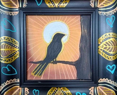 „Ptak Światła” to symboliczne przedstawienie wewnętrznej wolności, ciszy i obecności. Ciemna sylwetka ptaka na tle promiennego słońca tworzy kontrast między światłem i cieniem, ukazując balans, który nosimy w sobie.
